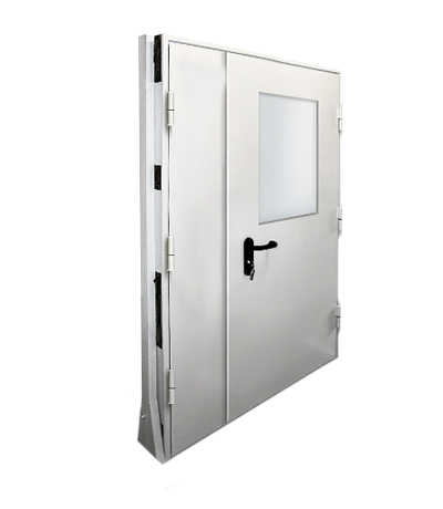 Дверь противопожарная металлическая двупольная с остеклением