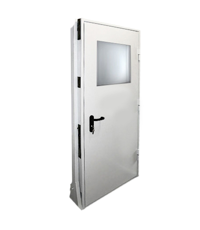 - Дверь огнестойкая металлическая EIS-60 изготавливается по индивидуальным размерам заказчика, одностворчатая или двухстворчатая, с остеклением до 25 % от площади двери.